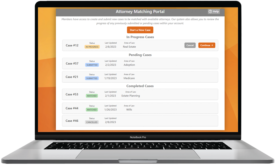 Accessing attorneys at your convenience and tracking the progress of your submitted cases through this new online portal. Any LegalEASE Plan member can register to use the LAMP technology to quickly match and connect to an attorney to help assist with their legal matters. Register now to access your benefits.